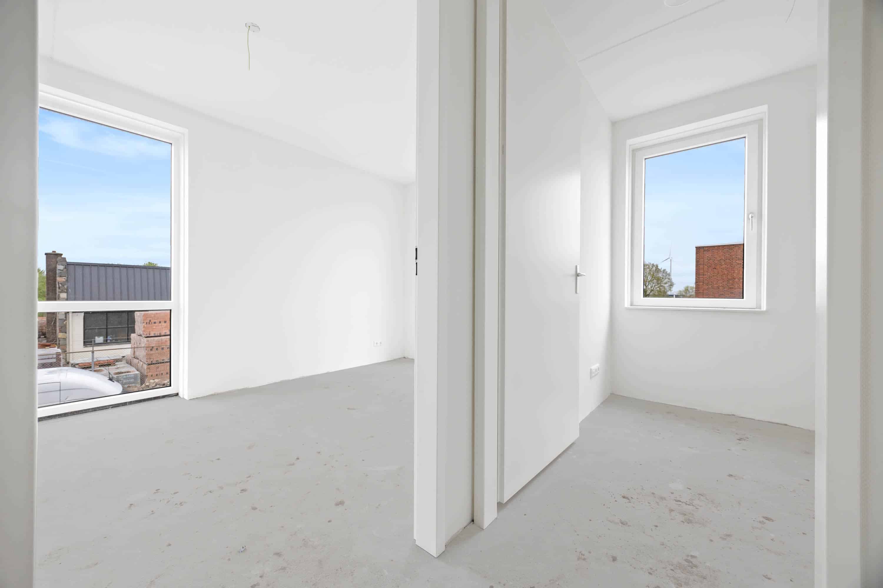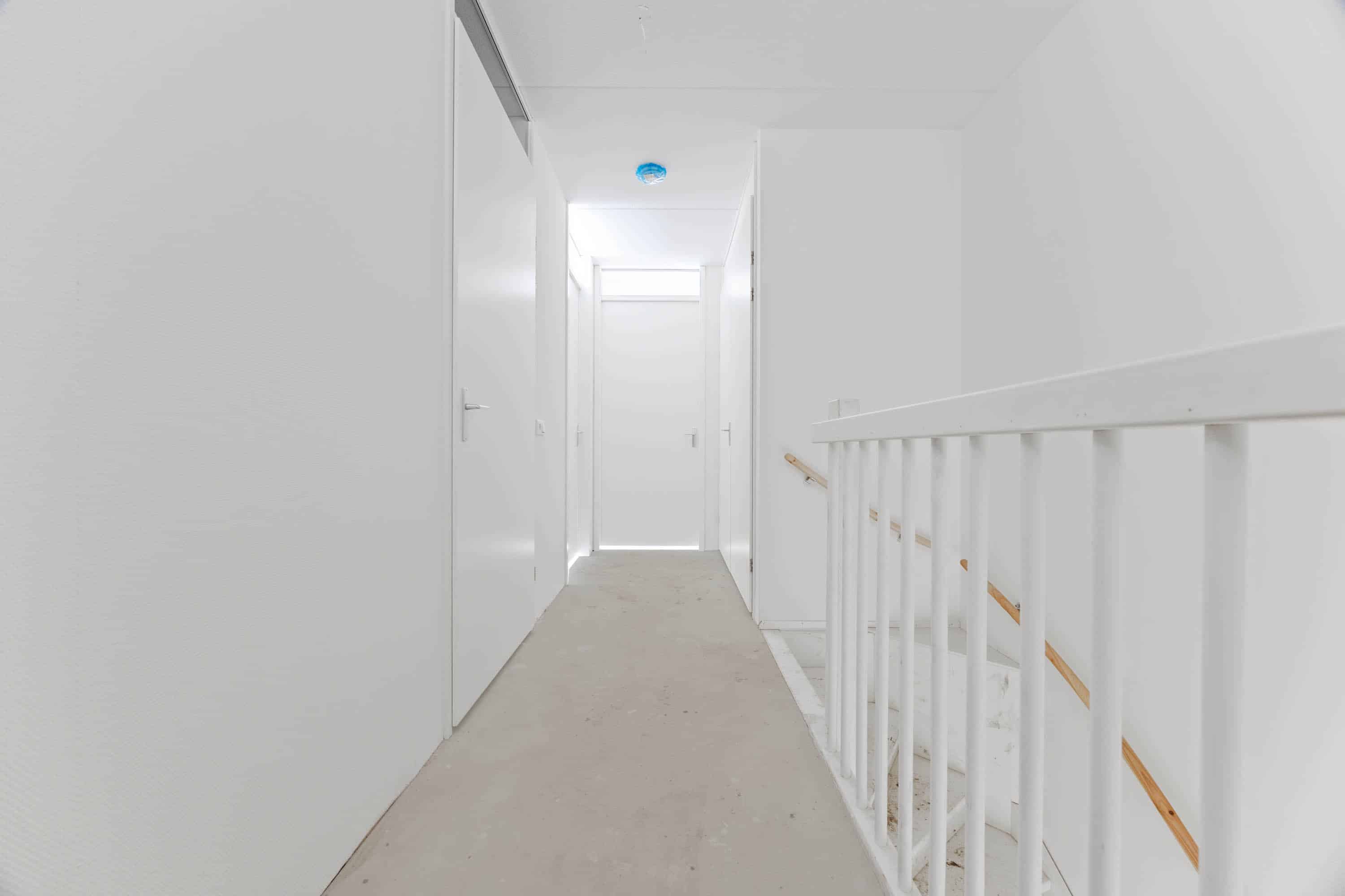 Verdieping: overloop met toegang tot twee ruime slaapkamers en extra bergruimte. Een derde slaapkamer is eenvoudig te realiseren door het plaatsen van een dakkapel.