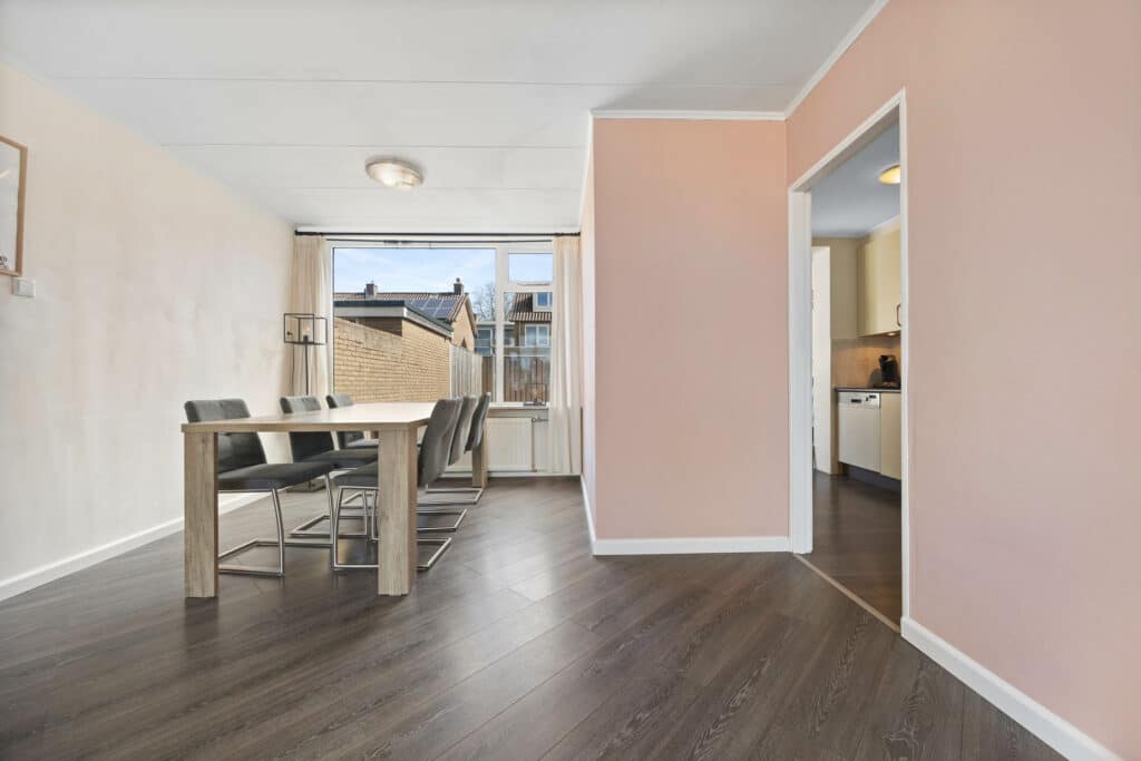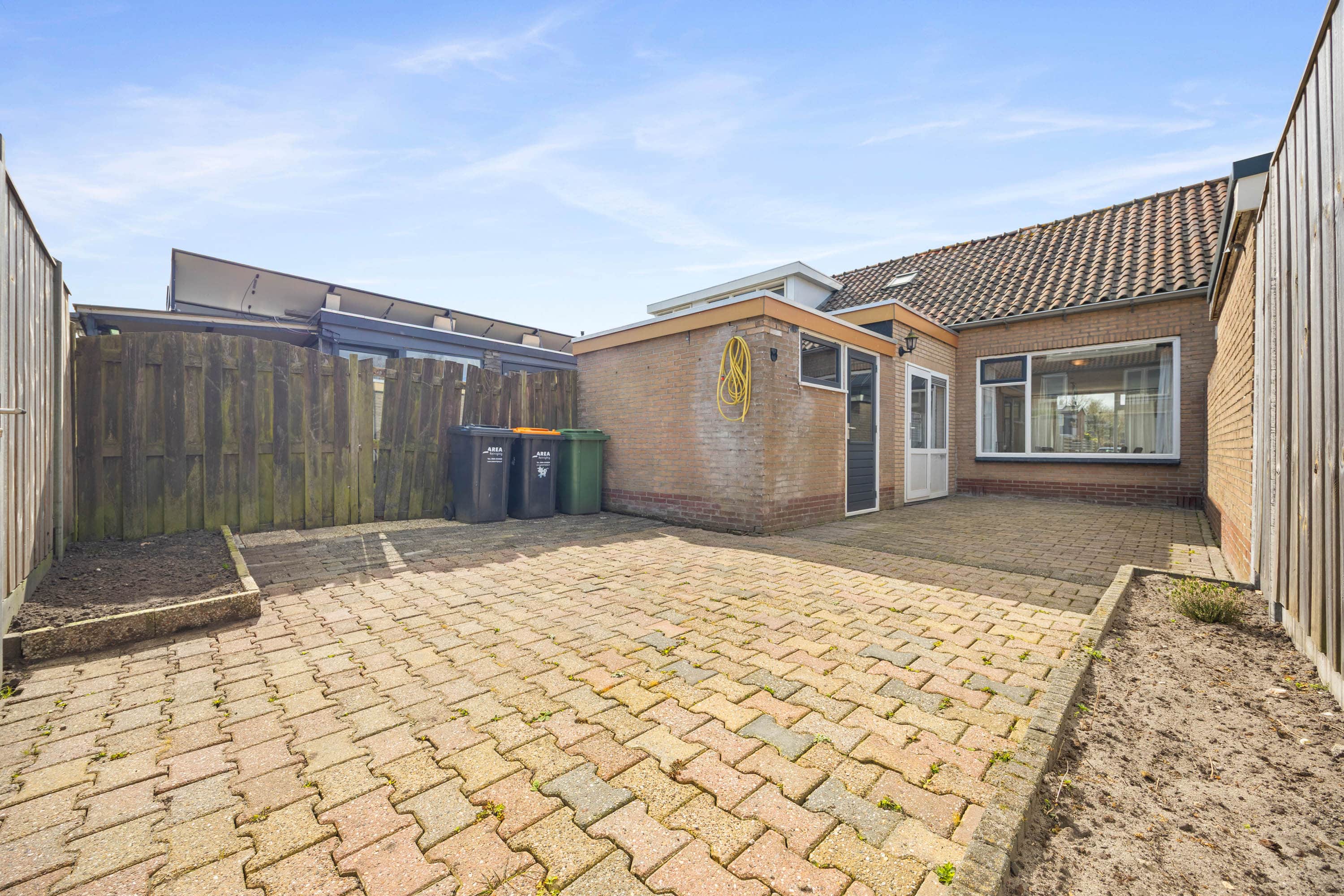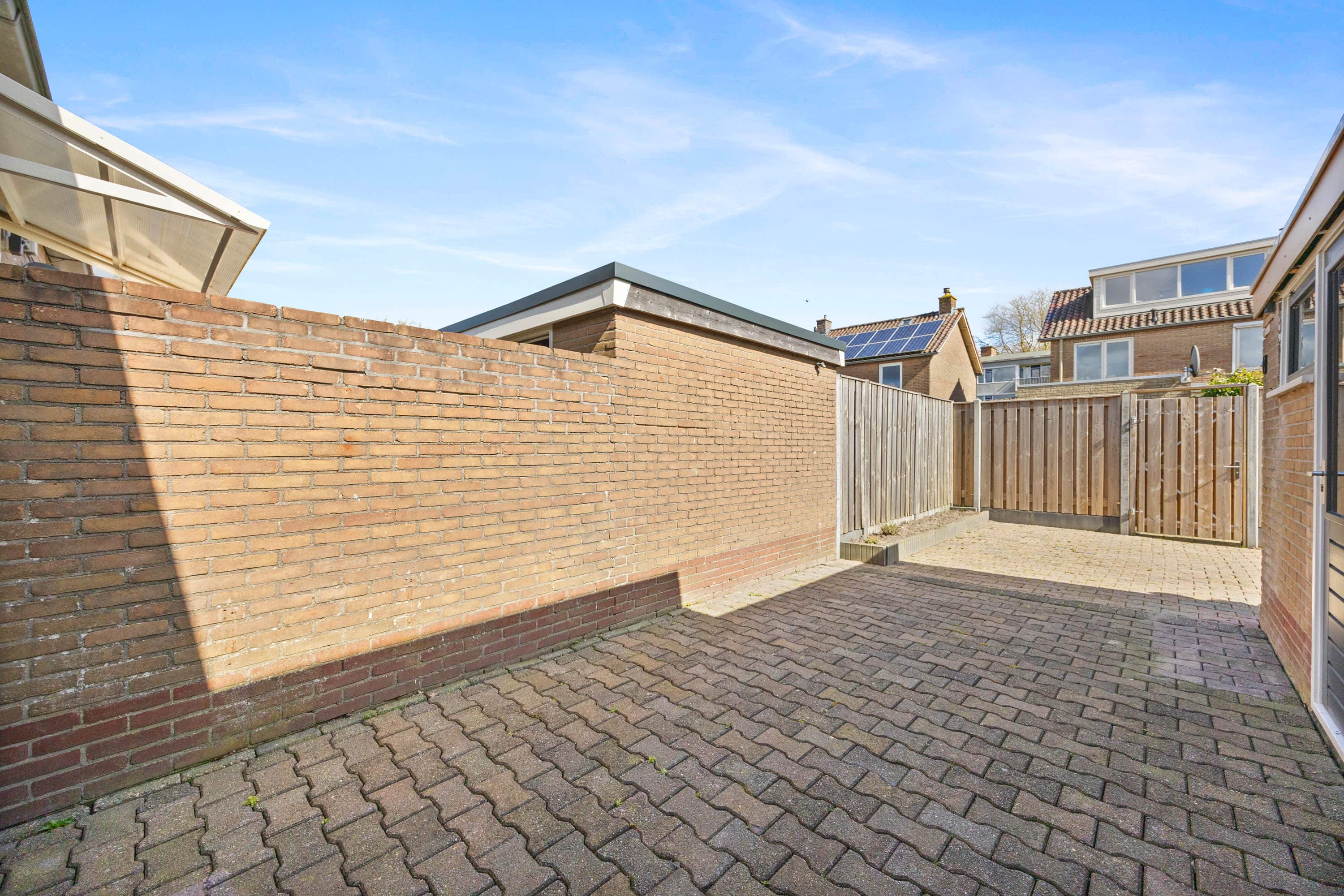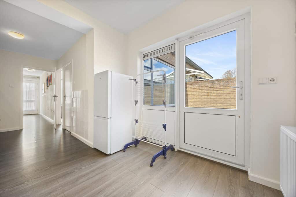 De woning beschikt over een zonnige achtertuin met achterom – perfect om geheel naar eigen wens in te richten. Parkeren kan gemakkelijk in de straat.
