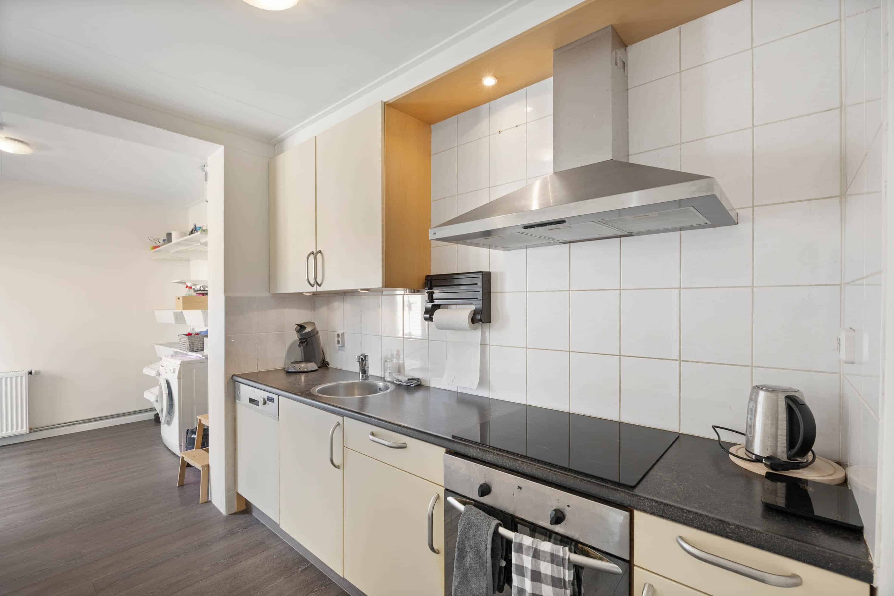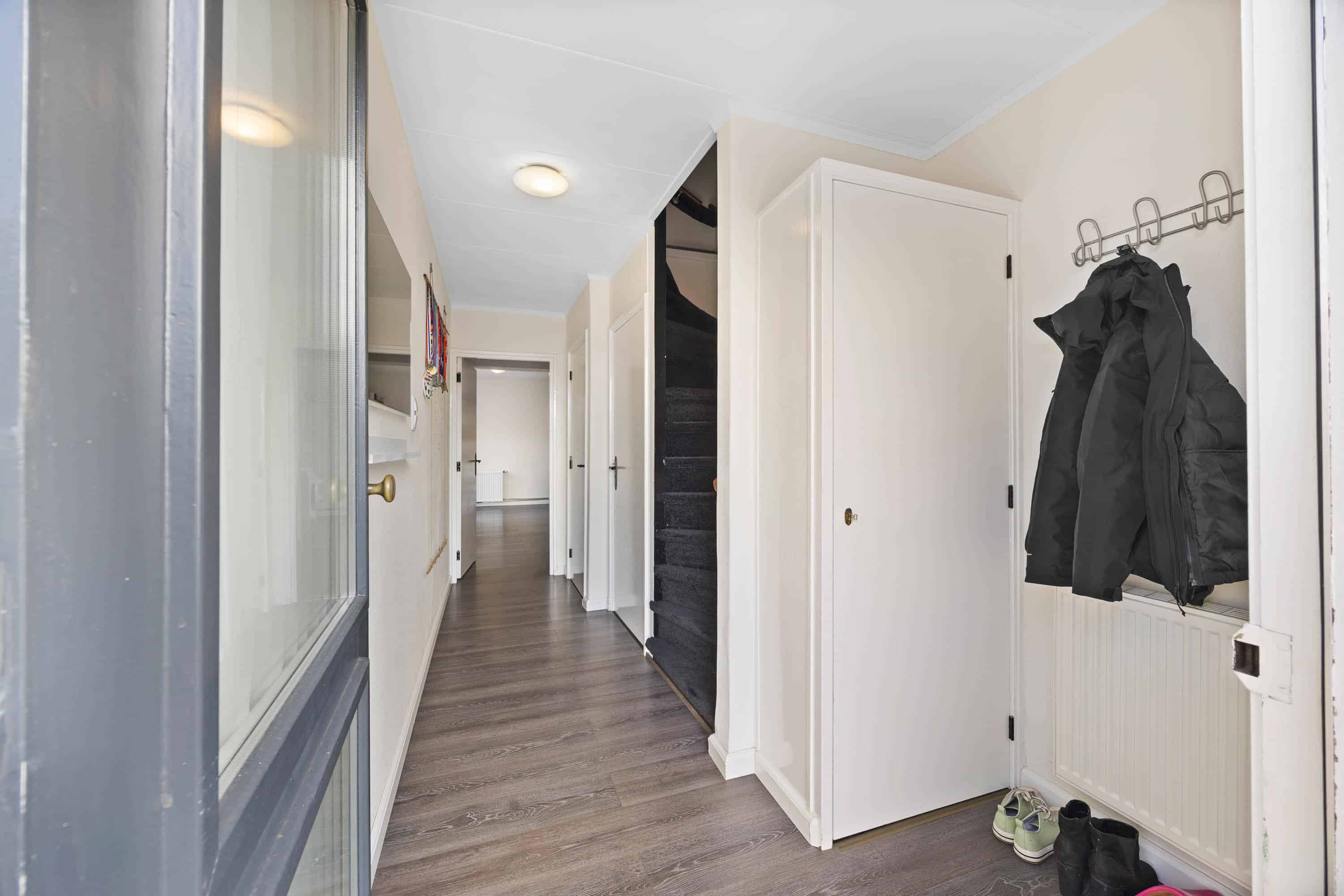 Begane grond: entree/hal met meterkast, handige kelderkast en een modern toilet (vernieuwd in 2017). De doorzonwoonkamer is licht en biedt een prettig uitzicht op de straat. De gesloten keuken is uitgerust met diverse inbouwapparatuur zoals een vaatwasser, oven, gaskookplaat en afzuigkap. Aansluitend bevindt zich de bijkeuken (aangebouwd en geïsoleerd in 2016), waar ook de cv-installatie en witgoedaansluitingen zijn ondergebracht. Achter de bijkeuken bevindt zich een stenen berging, waarvan het dak in 2021 is vernieuwd.